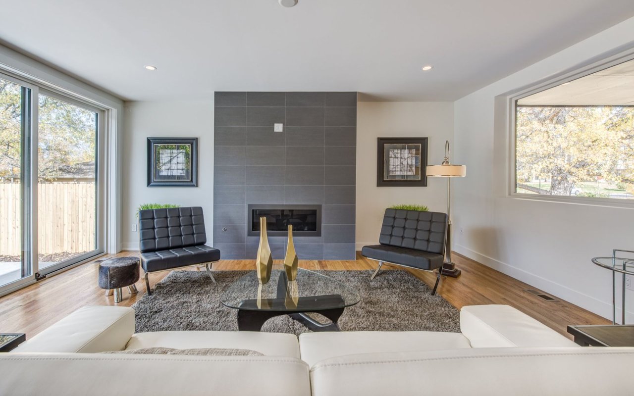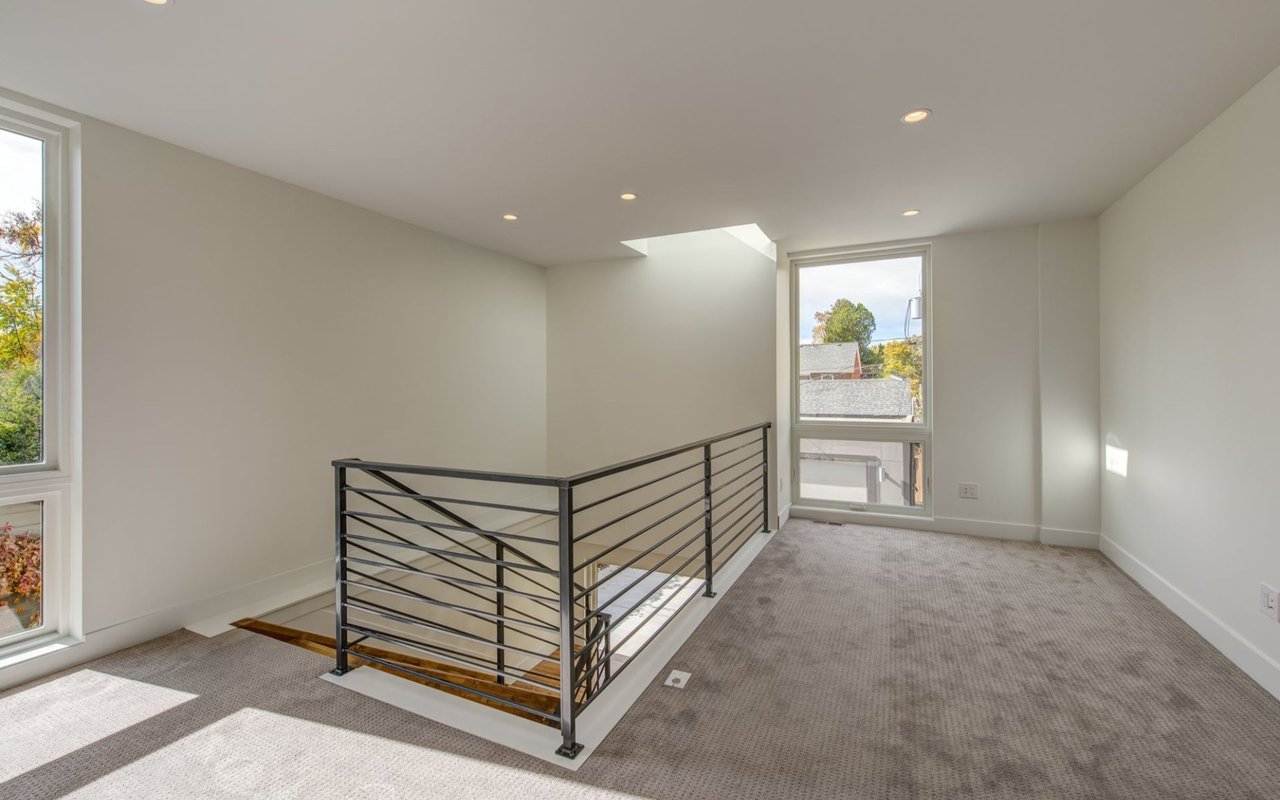 Exquisite Modern Home in Park Hill! Davis Urban Architects brings their unsurpassed design elements to this beautiful home off historic 17th Ave. Stunning from every aspect possible beginning with the open concept floorplan, 9ft floor to ceiling windows, hardwood floors throughout main level, 16ft of glass with sliding doors from the kitchen/great room to oversized backyard for entertaining. Formal dining room with wet bar, butlers pantry, custom cabinetry (walnut, matte & glass finishes), Jenn Air appliances, 12 ft solid quartz countertop, concrete tile fireplace, floating wood staircase with skylight, floor to ceiling windows w/ incredible natural light! Master bedroom and bath are ultra chic. Upper level laundry and loft! Basement perfect for media room! Private street with no through traffic-quiet! Quality craftsmanship from Vintage Denver Homes. Discerning taste and a love entertaining fit this home!